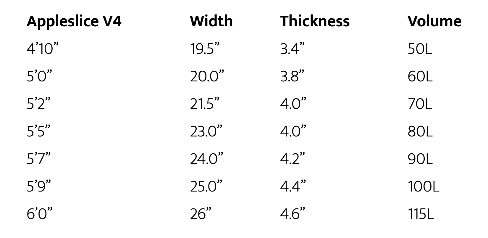 The AppleSlice V4 comes in a wide range of volumes to suit every riding style: