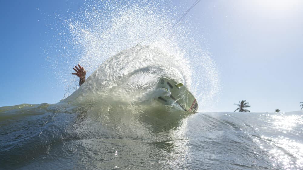 This is the standard construction for kite wave surfing. Meaning true surfing with a kite. You can do the occasional freestyle jump, but in general these boards are made for the waves. The construction consists of the normal Kite+ construction, but without the internal 3mm honeycomb. Instead there is an extra biaxial fibreglass layer under the front foot. The construction is more than strong enough for everyday use, and you will not ding the board easily. After some time slight heel dents may appear, this is considered normal, and it will not weaken the board.
