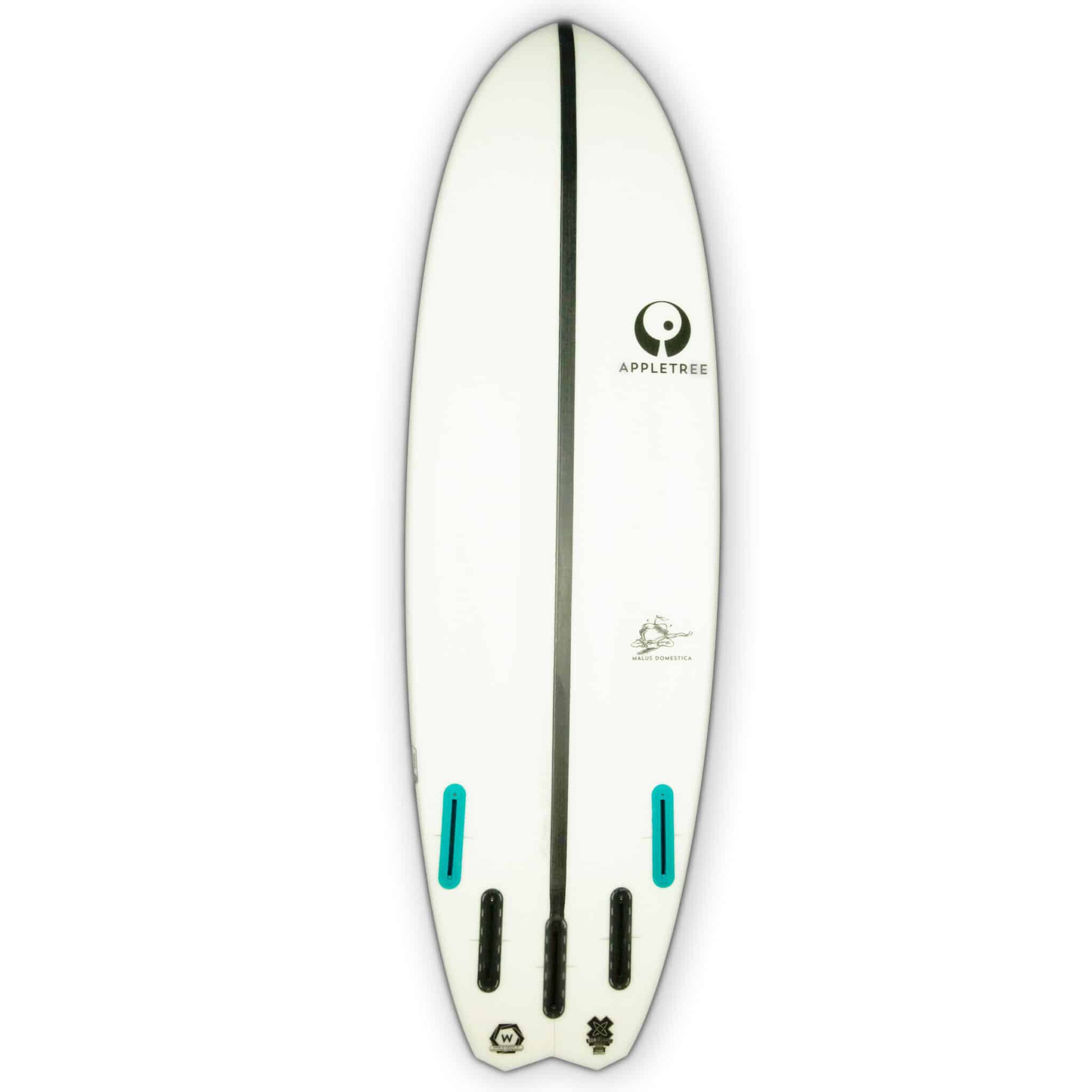 The first thing you notice on the Appletree Malus Domestica is its extreme bottom contour. But this is not where the board started. When designing a board, we first try and find the best combination of rocker, outline and rails. Only when we have this balance right we add stuff like crazy tails and bottoms to make the board better. And more exiting! The deep concaves on the rail give the board great stability when riding upwind. The bottom follows the deck contour, making the effective rail thinner and better through chops, without making the board itself too thin. The concaves cut the rocker in the middle of the bottom, this creates a super effective surface for the water to pass underneath. Making the board really fast and early planning. This is a super allround kiteboard! The Appletree Malus Domestica comes with 5 fin boxes as standard, giving you the choice of riding quad or thruster.