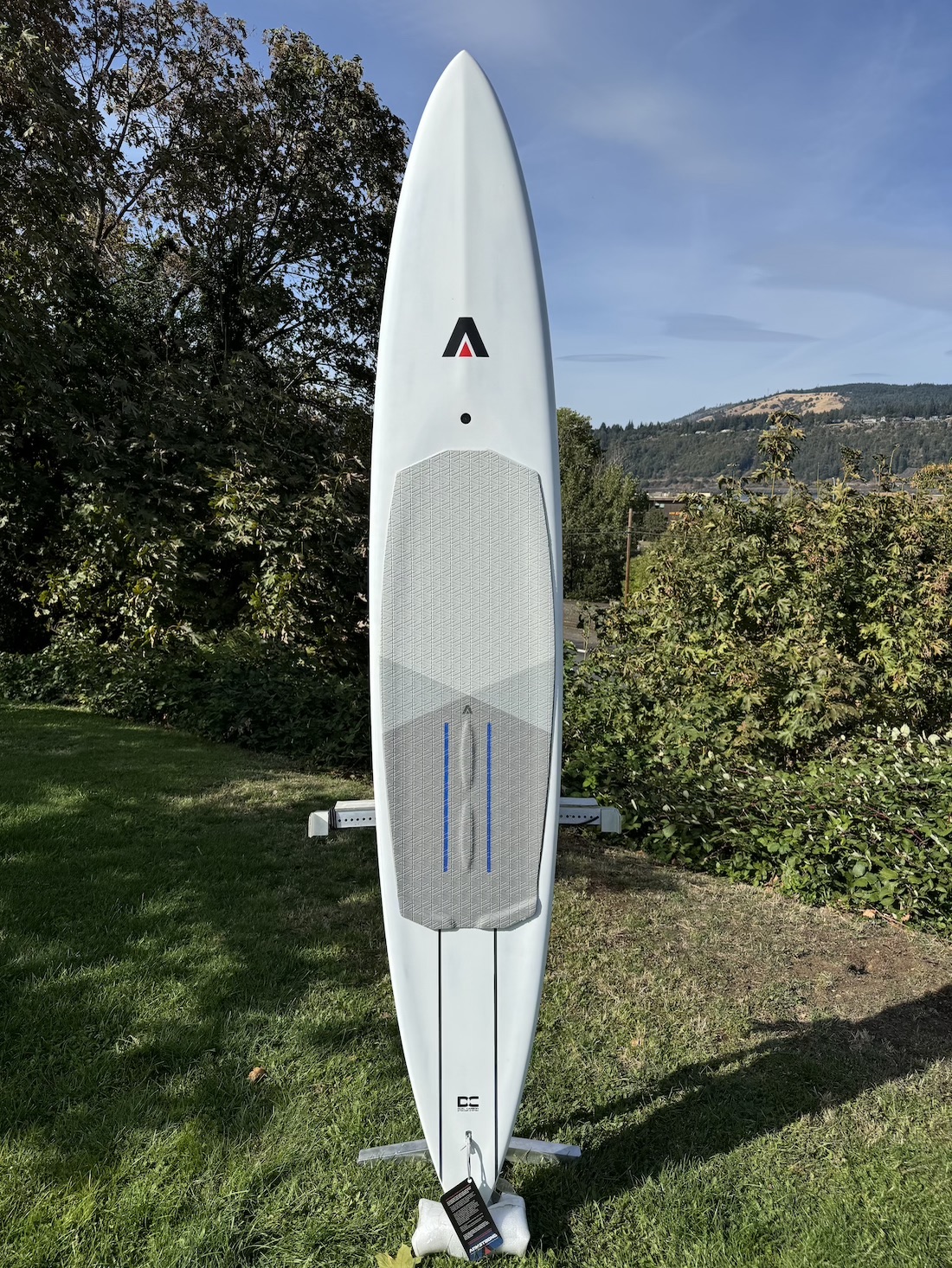 – Increased length – Greater paddling speed with improved stability and tracking for easier paddling. – Split foredeck – Inspired by our Wing FG boards, the split anhedral foredeck shape sheds water with ease. – Refined bow – Improved paddling efficiency and touchdown recovery and reduced swing weight for pumping and carving. – Minimal deck recess – A flatter deck to hold more volume and shed standing water more quickly. – New deck grip – Like on our Wing FG board range, raised deck grip arch bars and front/rear corner blocks provide intuitive foot placement references. – Diamond V tail – All new tail shape with significantly more rocker and an extra chine to improve takeoff performance and minimise tail touchdowns when pumping and carving. – Foil track placement – Pushed further forward for increased lift and manoeuvrability. – Carbon foil tracks – Proprietary carbon fibre foil tracks are keyed directly into the fibres of the stringers for a fully integrated construction. – Proven Construction – Deck to bottom i-beam dual stringers provide maximum structural rigidity and durability.