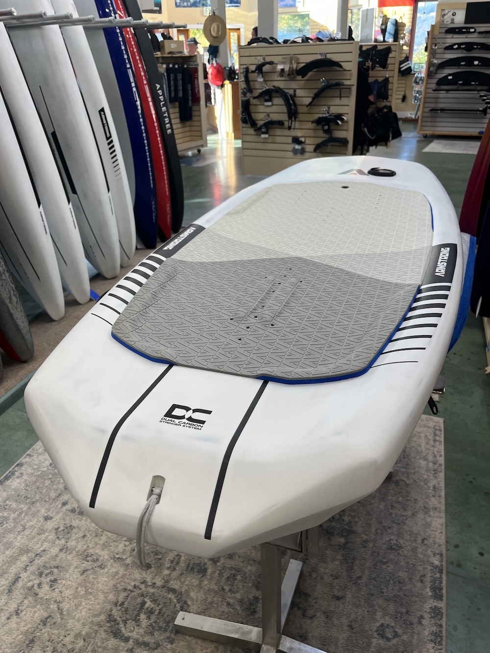 “B+” condition. Gently used at a trade show here in Hood River, Oregon. Includes Armstrong board bag and 6-month board warranty. Also includes Foil Drive receiving dock (shown on deck).