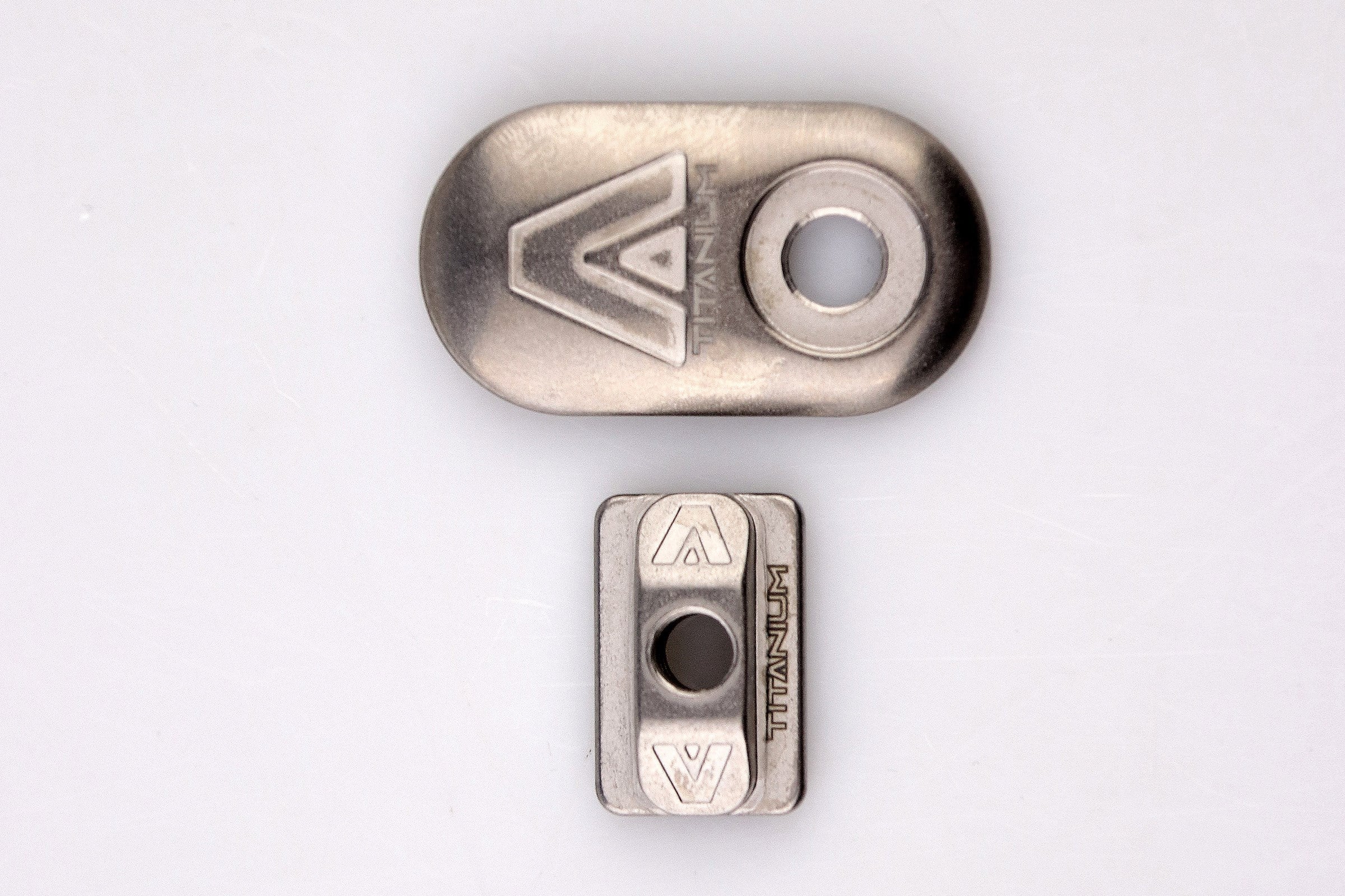 Set of 4 Titanium T Nuts, Bidirectional Titanium washers with Torx head stainless steel 316L screws, available with dome or countersunk screws.