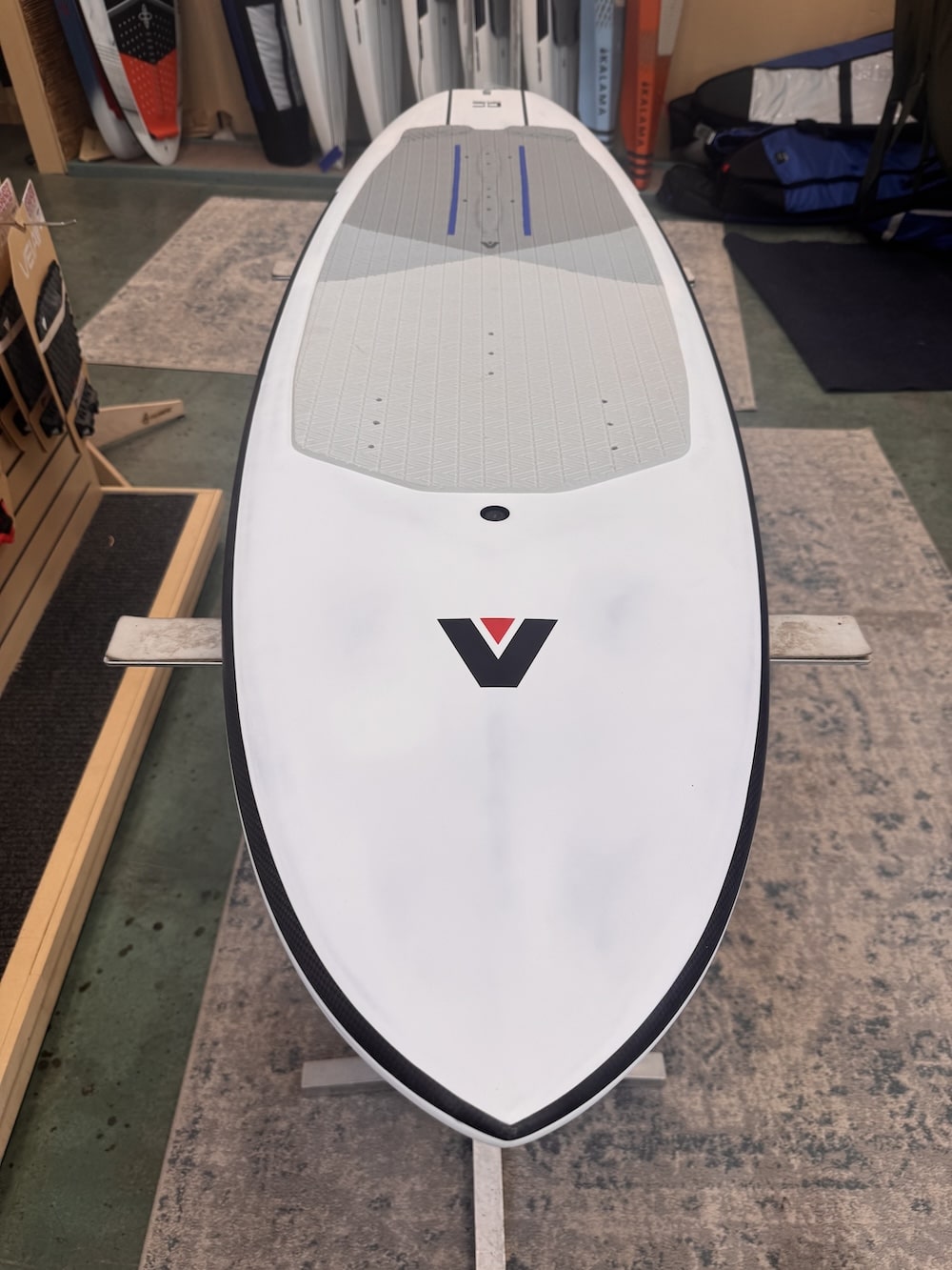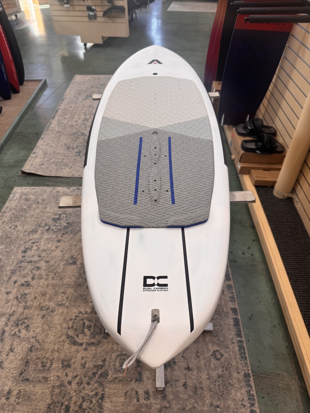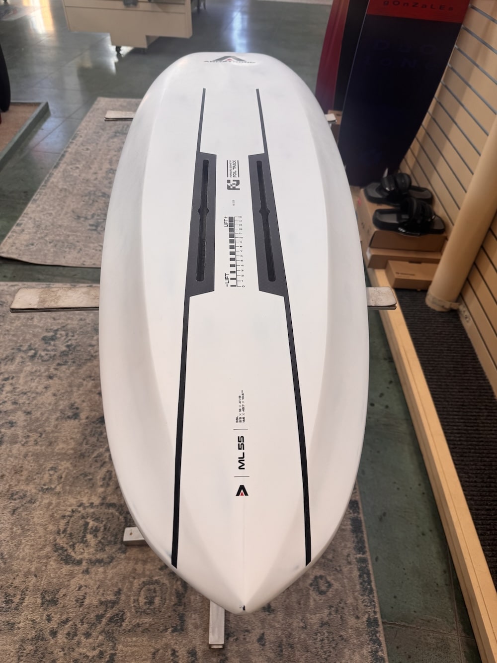 “B+” condition. Gently used at a trade show here in Hood River, Oregon. Includes Armstrong board bag and 6-month board warranty.
