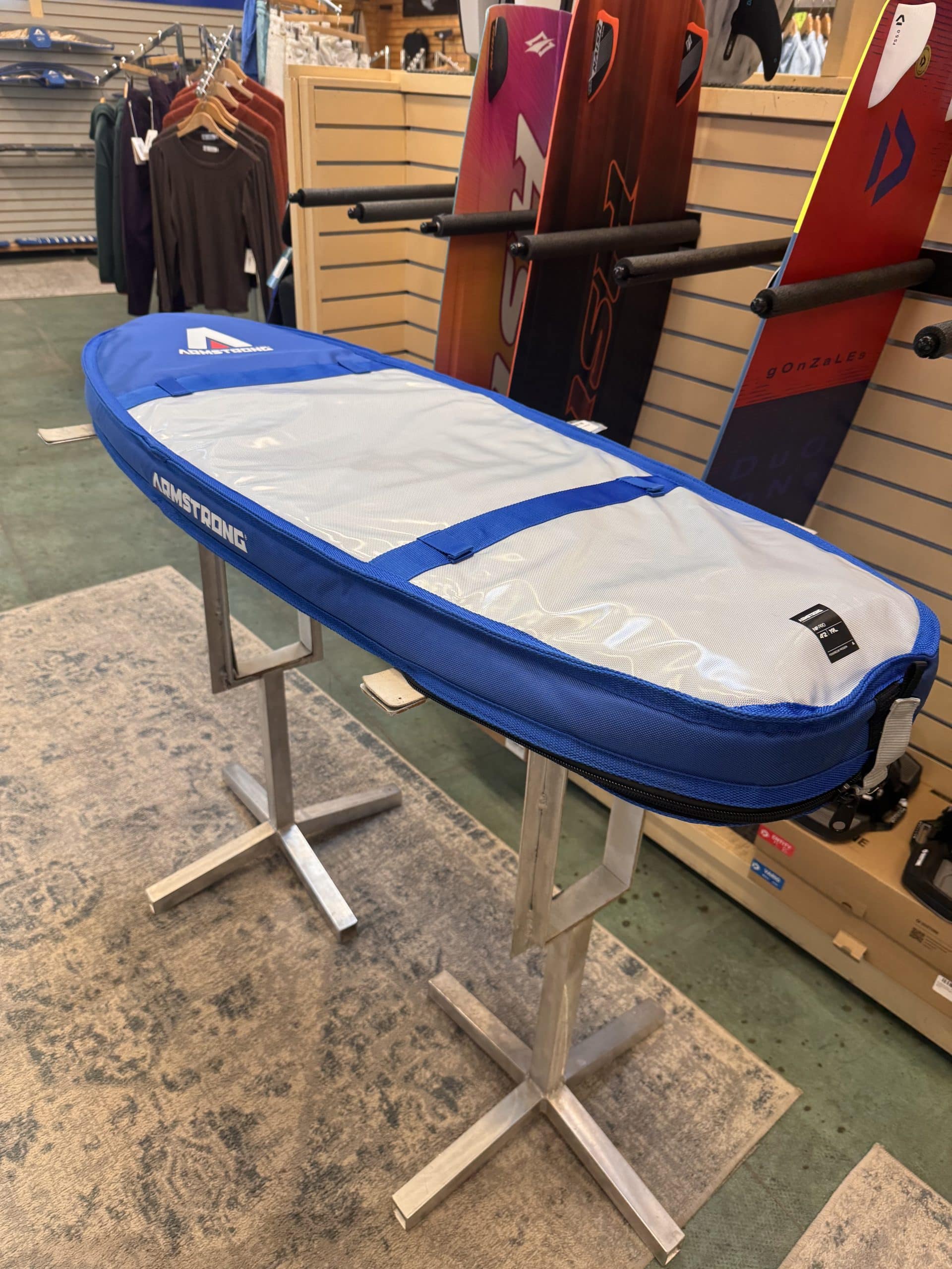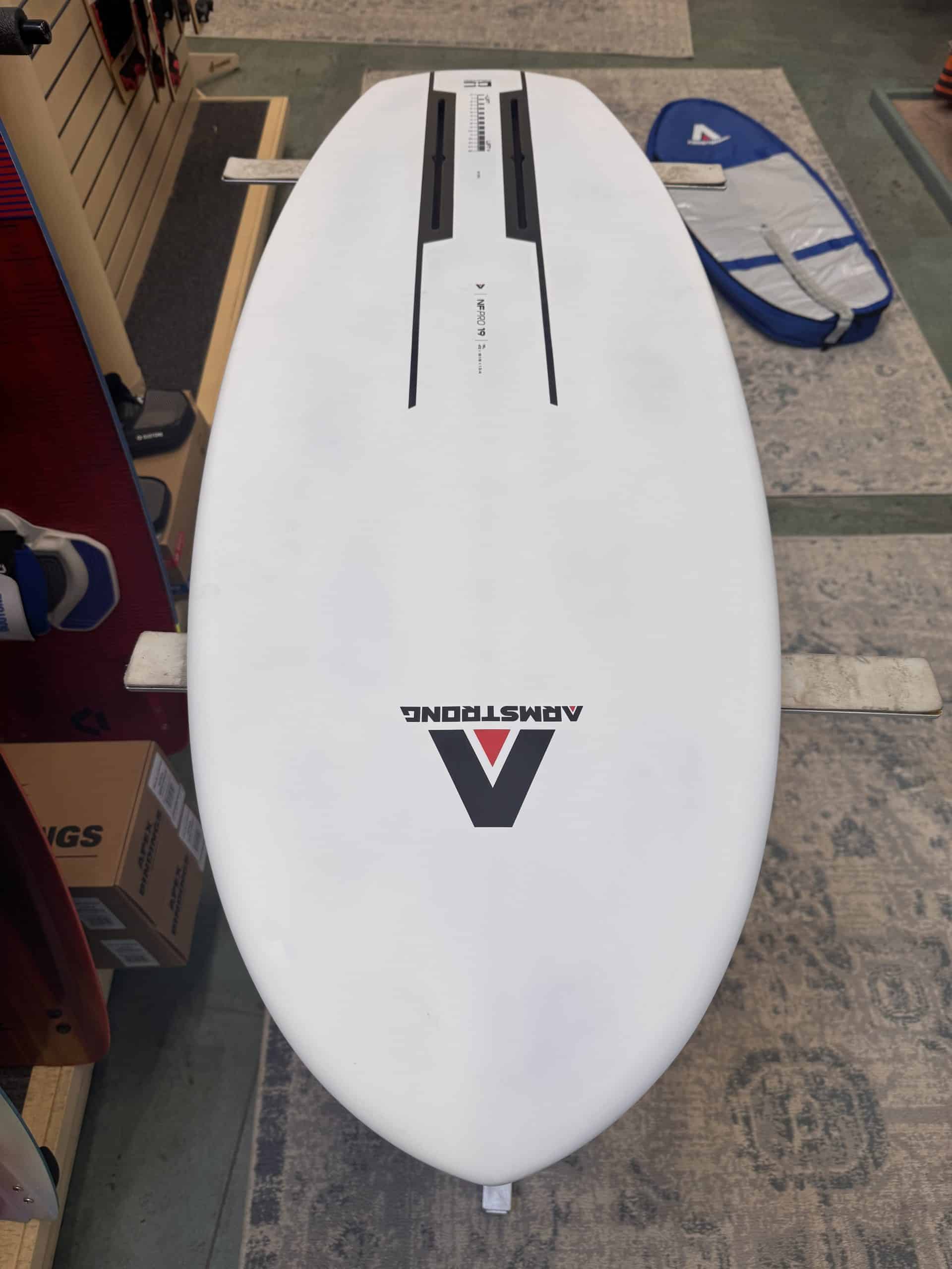 “B+” condition. Gently used at a trade show here in Hood River, Oregon. Includes Armstrong board bag and 6-month board warranty.