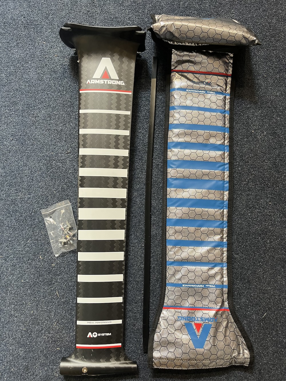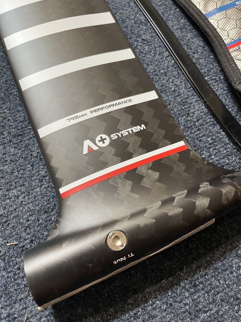 “B+” condition. Gently used at recent trade show here in Hood River, Oregon. Includes Armstrong Titanium hardware to connect board and fuselage. Ships free for orders in mainland U.S.