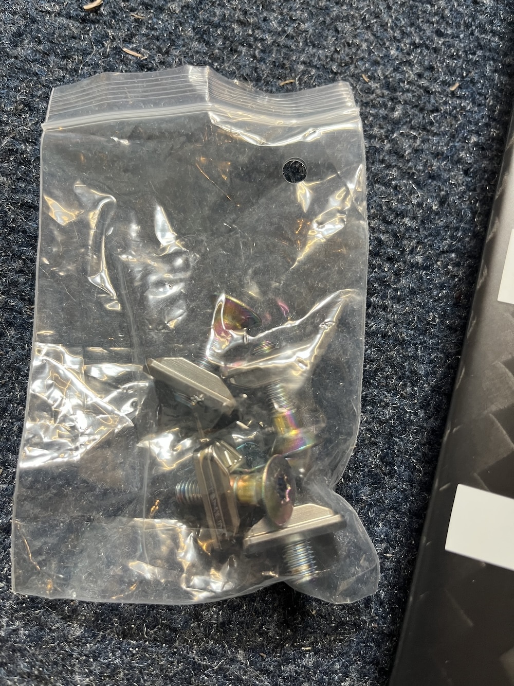 Look closely through the packaging. Fins, foot straps and vent plugs are often concealed in a sheath of cardboard that's easy to discard. Also, check inside the board box, and shake the box to be sure. You'll likely dislodge a small box containing the missing items.