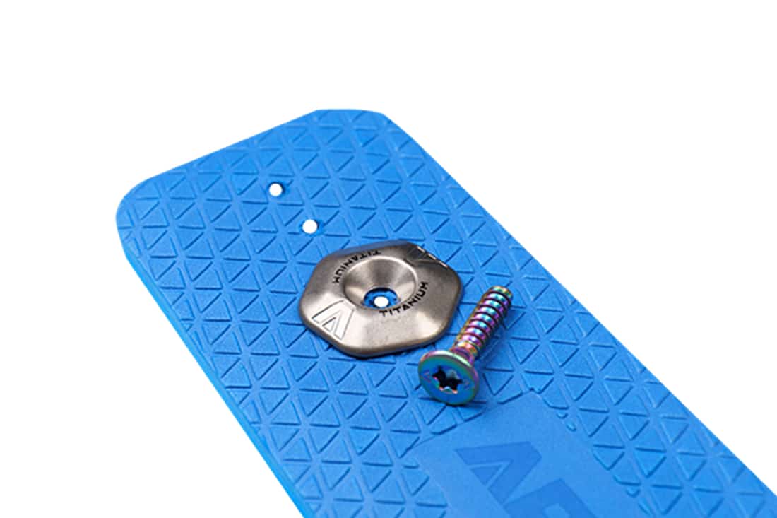– On the WKT board, use the WKT-specific 19.5mm titanium plated countersunk head screws and titanium hex washers.