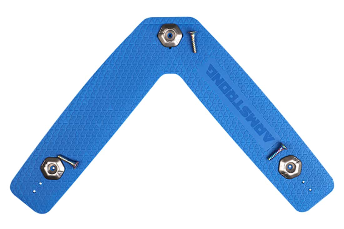 Armstrong’s V-strap front footstrap design offers riders the slickest and most comfortable option for winging or kite foiling. Crafted from the same pressed memory foam as our popular straight footstrap, this arrangement allows for ultra smooth front foot changes when tacking and gybing. The V-strap is easily compressed under the chest when paddling out and provides multiple placement and sizing options thanks to several screw holes at each corner. We recommend firmly screwing down the washers in order to fully compress the foam webbing for maximum strength and material longevity.