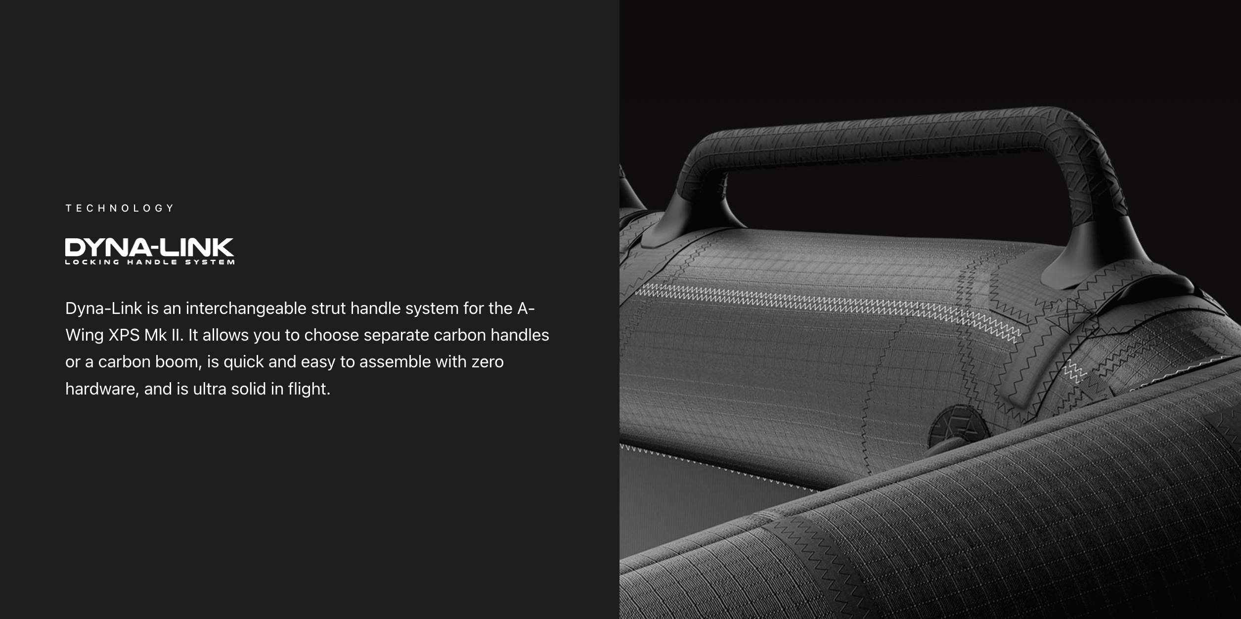 After two years in development, the new A-Wing XPS Mk II is here. Whether it’s next level wing surfing, freestyle, or the Wednesday night local race, it’s all in the cards with the A-Wing XPS Mk II. This evolution of the A-Wing delivers greater stability and upwind speed along with the all new Dyna-Link handle system for seamless adjustability between carbon handles or a boom. The XPS Mk II is the most versatile wing, re-engineered.