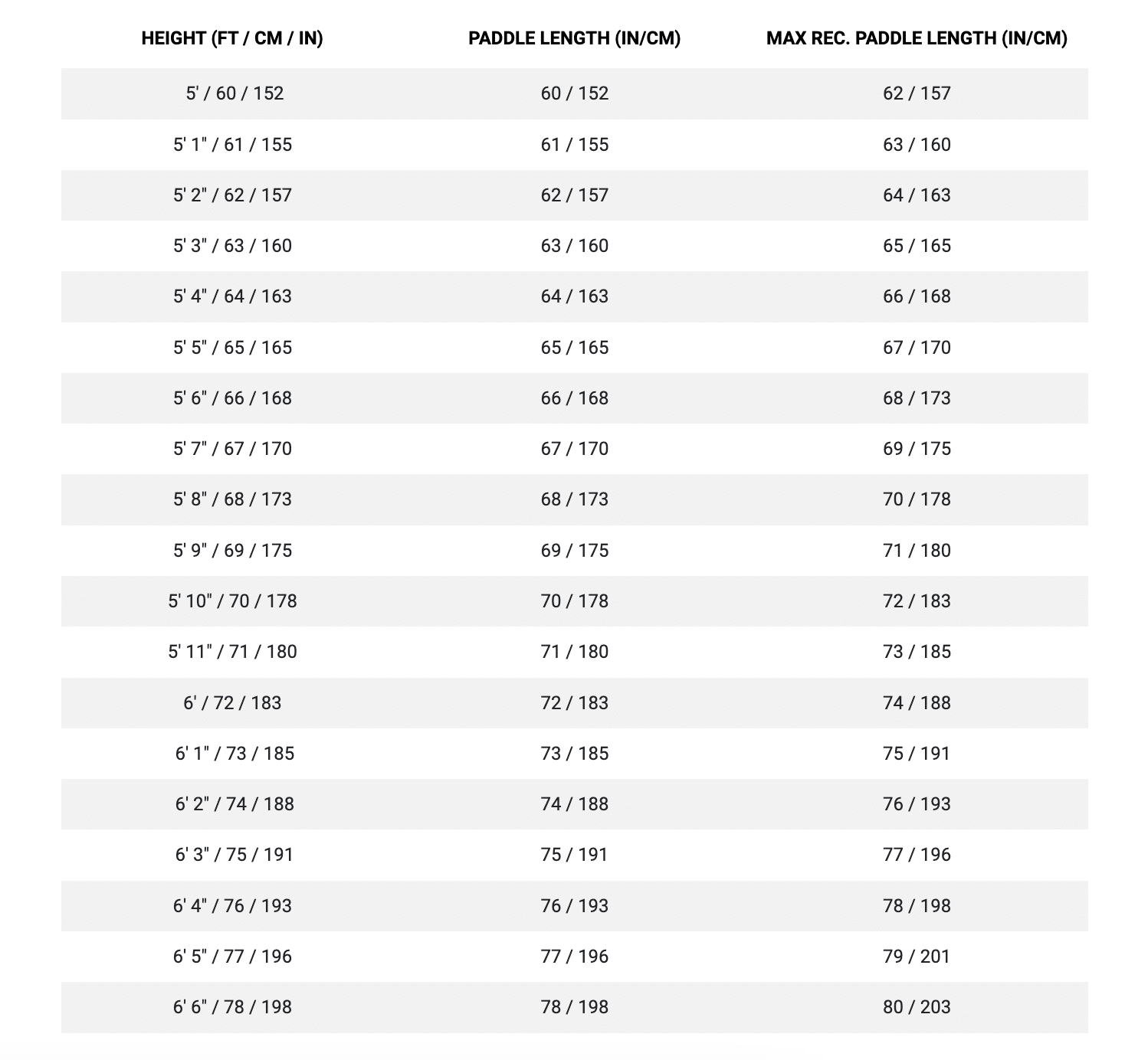 The FoilX length guide below is a guide only. With lower aspect blades, a shorter paddle is preferable. For riding on higher volume boards or if you like mid-foiling strokes, then consider 1-2 inches (2.5 – 5cm) longer than your height for more reach. Remember that your new paddle will be assembled with hot glue, which means you can always shorten if needed. If your paddle is too long you will struggle to paddle at a high cadence.
