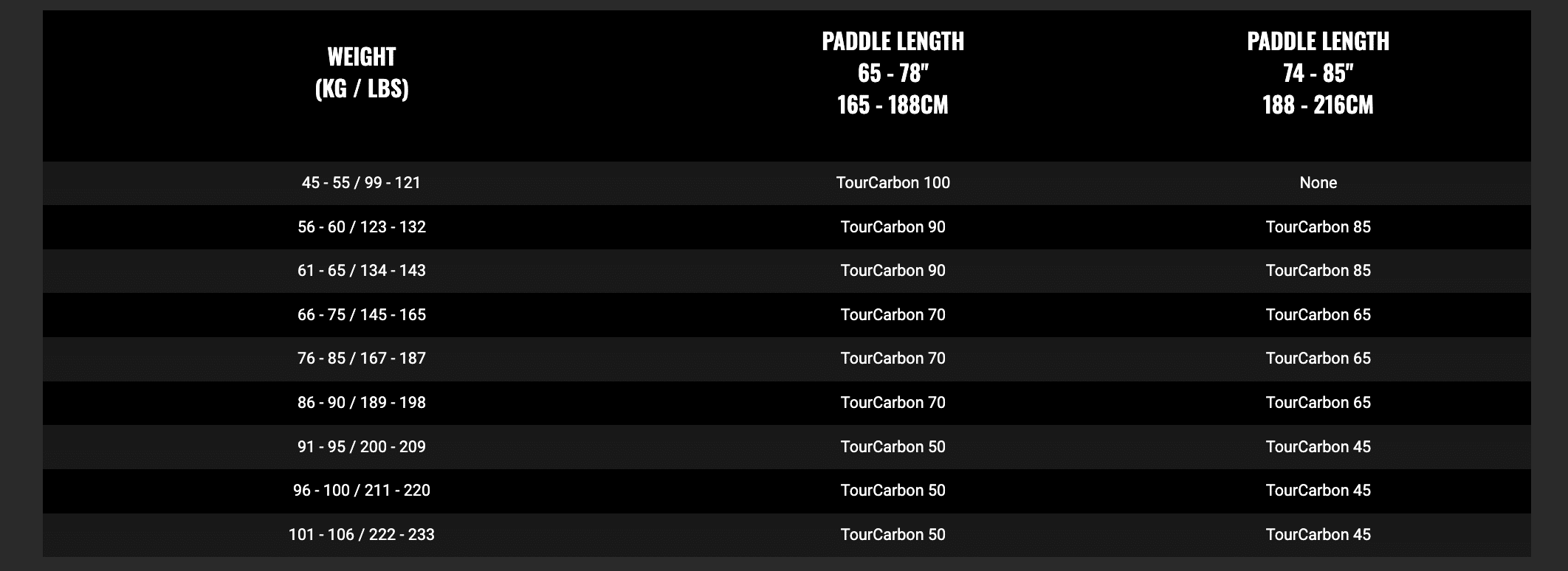 Engineered with a double tapered round-oval-round design, the Tour Carbon shaft maximizes stiffness in the lower section, delivering stability and optimizing power transfer to the blade. The upper section has a thinner and more flexible round profile, minimizing fatigue. The oval-shaped middle-grip area has a natural carbon-textured matte finish ensuring a directional feel with a secure and relaxed grip. Constructed with 30T pre-preg carbon laminates for reduced weight and increased paddling power. With a range of options there’s a perfect fit for every enthusiast across the entire spectrum of paddlers.