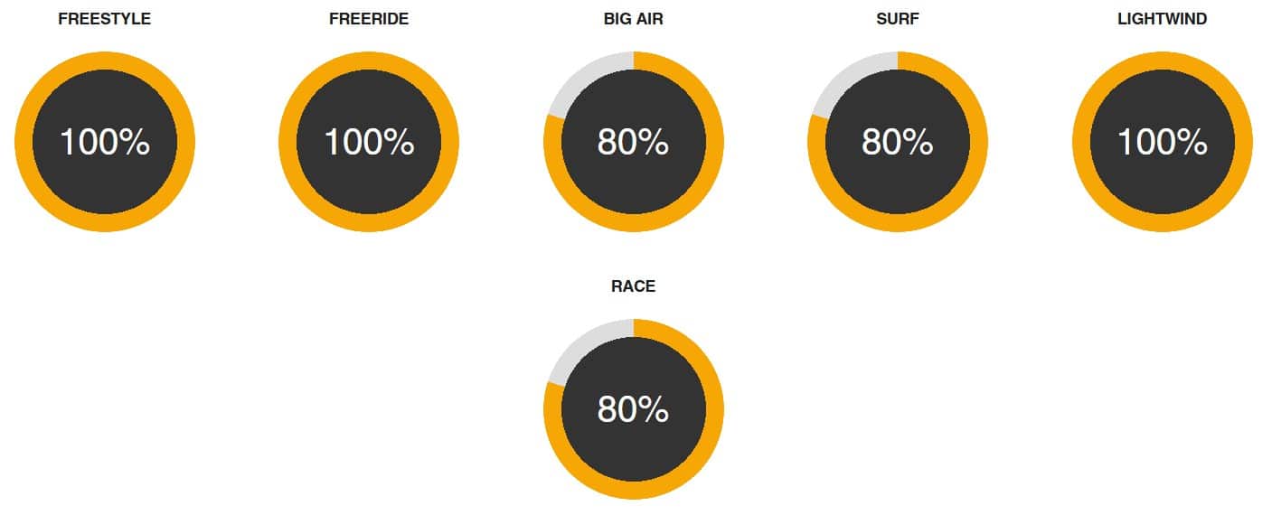Progressive tip twist as the sizing increases in the Vision range helps keep sheeting relative and responsive no matter what size wing you ride.