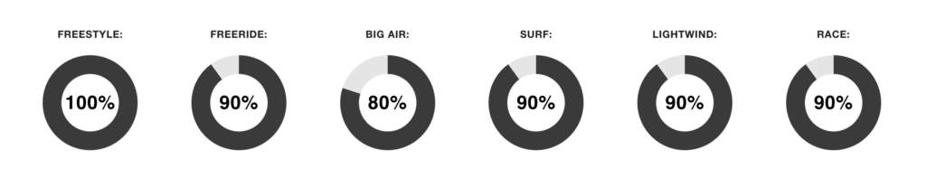 Medium full perfectly balanced profiles ensure smooth power delivery and stability in high winds.