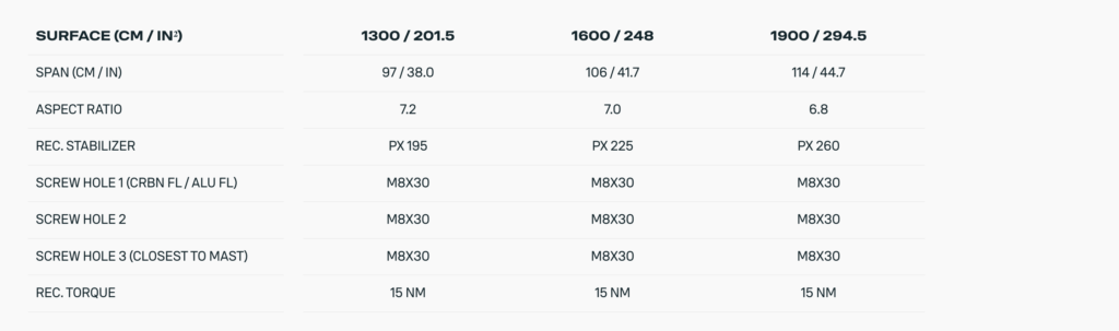 Available in three sizes – 1300 cm², 1600 cm², and 1900 cm² – the Free 2.0 pairs perfectly with the new 195, 225, or 260 PX stabilizers, offering a tailored setup for any riding style or condition.