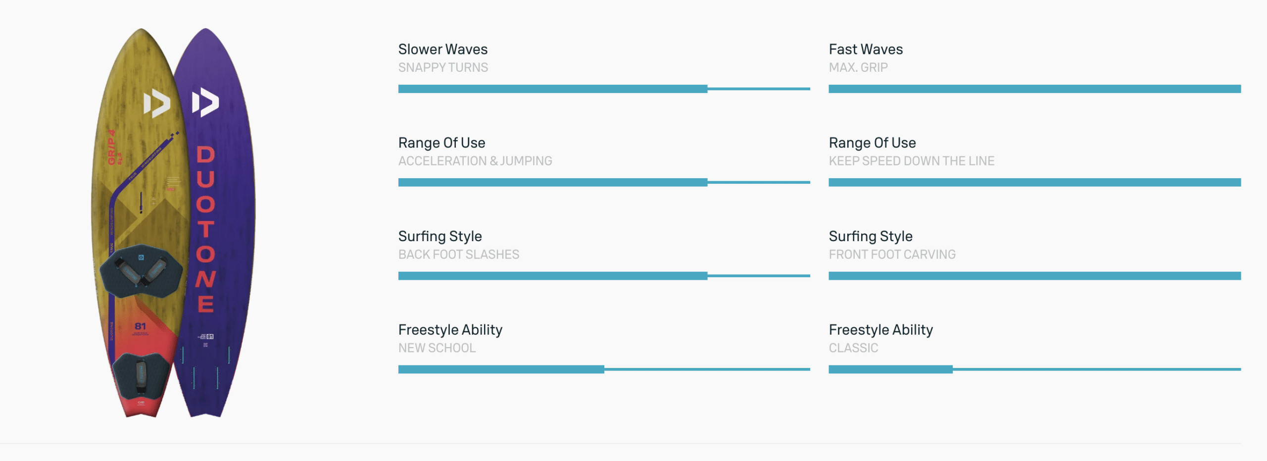 - Boards that are super versatile to sail and allow front- and back foot riding to get the most out of each wave even when the conditions are changing