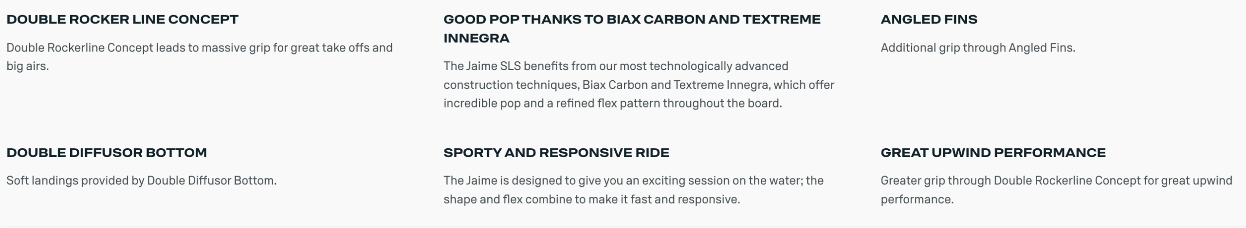 This innovative feature absorbs impact and reduces the jarring sensation of landing, ensuring you can continue to push the limits without discomfort or risk of injury. In addition to its impressive features, the Jaime SLS offers a smooth and comfortable ride with its Double Rockerline Design. Enjoy a buttery-smooth experience as you carve through the water, making every session an enjoyable and effortless one. Experience extraordinary upwind performance with the Jaime SLS, thanks to its Double Rockerline Concept. Greater grip ensures excellent upwind capabilities, allowing you to explore new areas, challenge yourself on different courses, and dominate in any wind condition. The Duotone Jaime SLS is more than just a board – it’s a benchmark of freestyle performance. Accept the challenge, unleash your creativity, and take your riding to unimaginable heights with this legendary board. Get ready to push the limits, land smoothly, and dominate the water like never before.