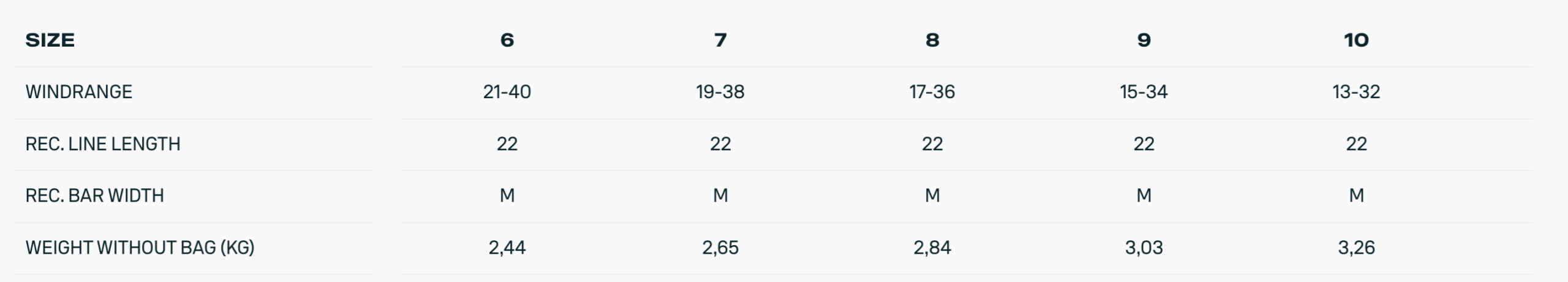 The clean bridle system provides instant and accurate response, offering a highly connected feel for total control in all conditions.