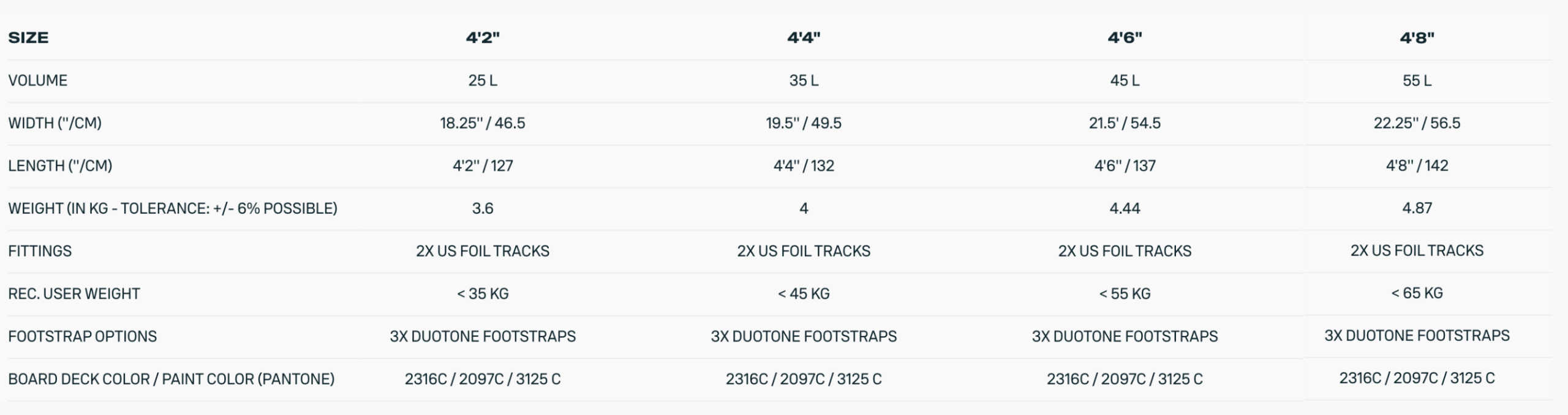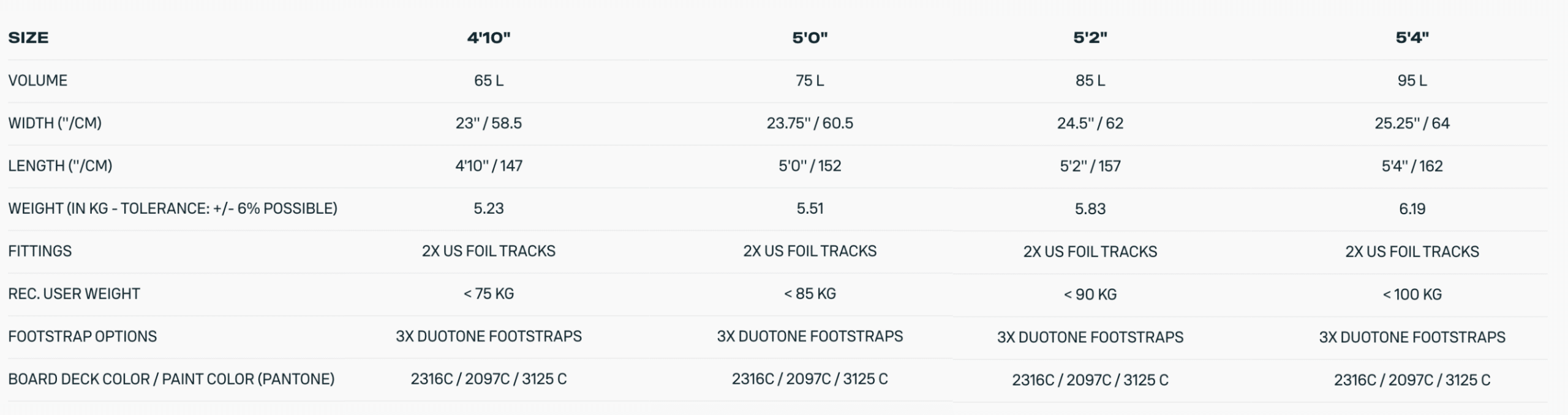 With multiple footstrap options, the Sky Style SLS is highly adaptable to various riding styles. Available in sizes ranging from 4’2” (25l) for our Young Blood talents to 5’4” (95l) for heavier riders, there’s a Sky Style SLS perfectly matched to every rider.