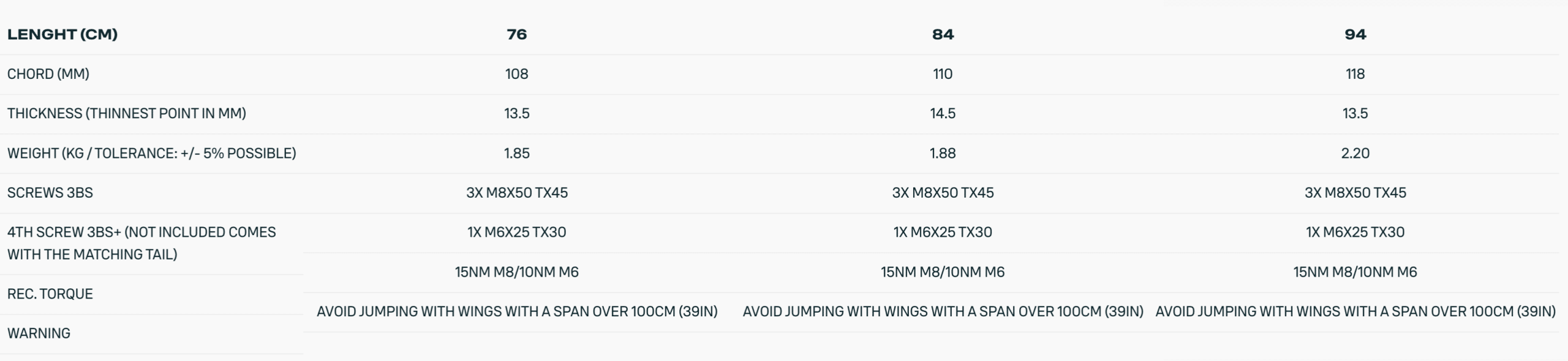 Available in three sizes – 76cm for prone and downwind oriented riders, 84cm for freestyle, freeride and most days in the waves, with the 94cm suited for freerace and larger surf.
