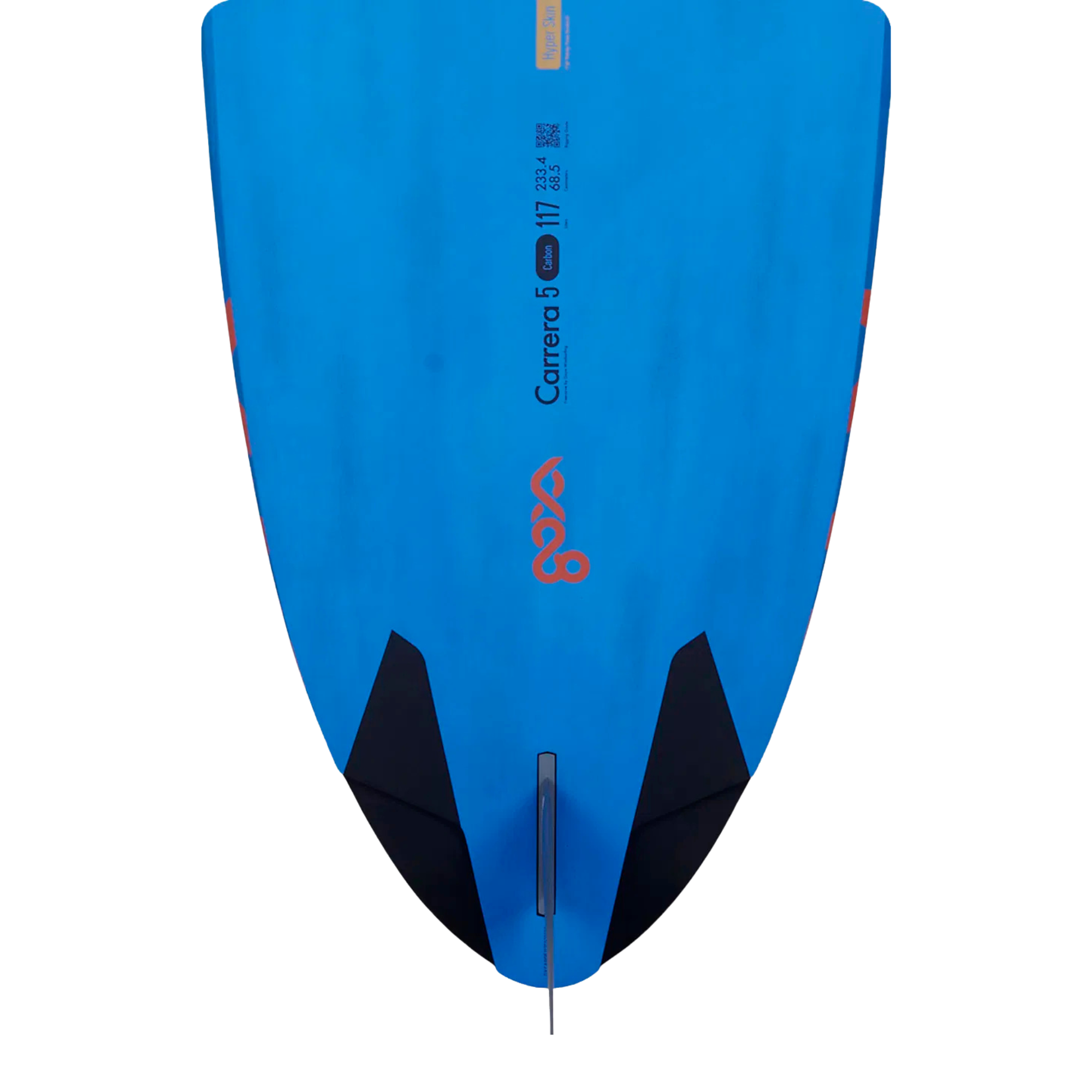 This is not a Blue Volar, and it does not have centered or entry-level insert options. This is the All-New Carrera 5 Carbon, a Raceboard with a FreeWave deck that connects the entire sole of your foot to the deck below. Paired with a race rocker and cut-outs, nothing stops you from flying at max speed with the confidence over chop and open ocean swells that you only felt on your wave board—built like a race board, still strong to handle all the excitement.