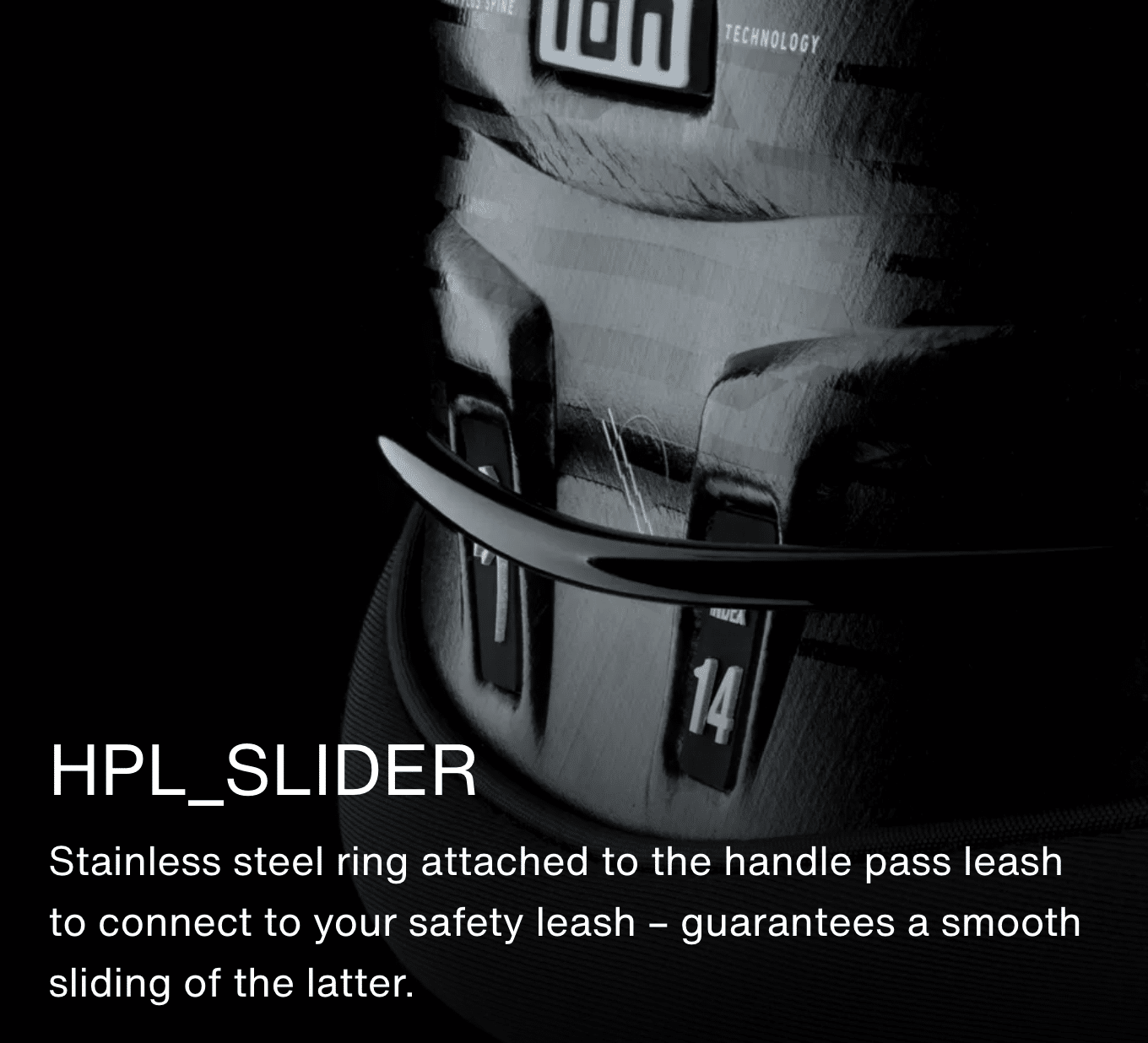 Stainless steel ring attached to the handle pass leash to connect to your safety leash – guarantees a smooth sliding of the latter.