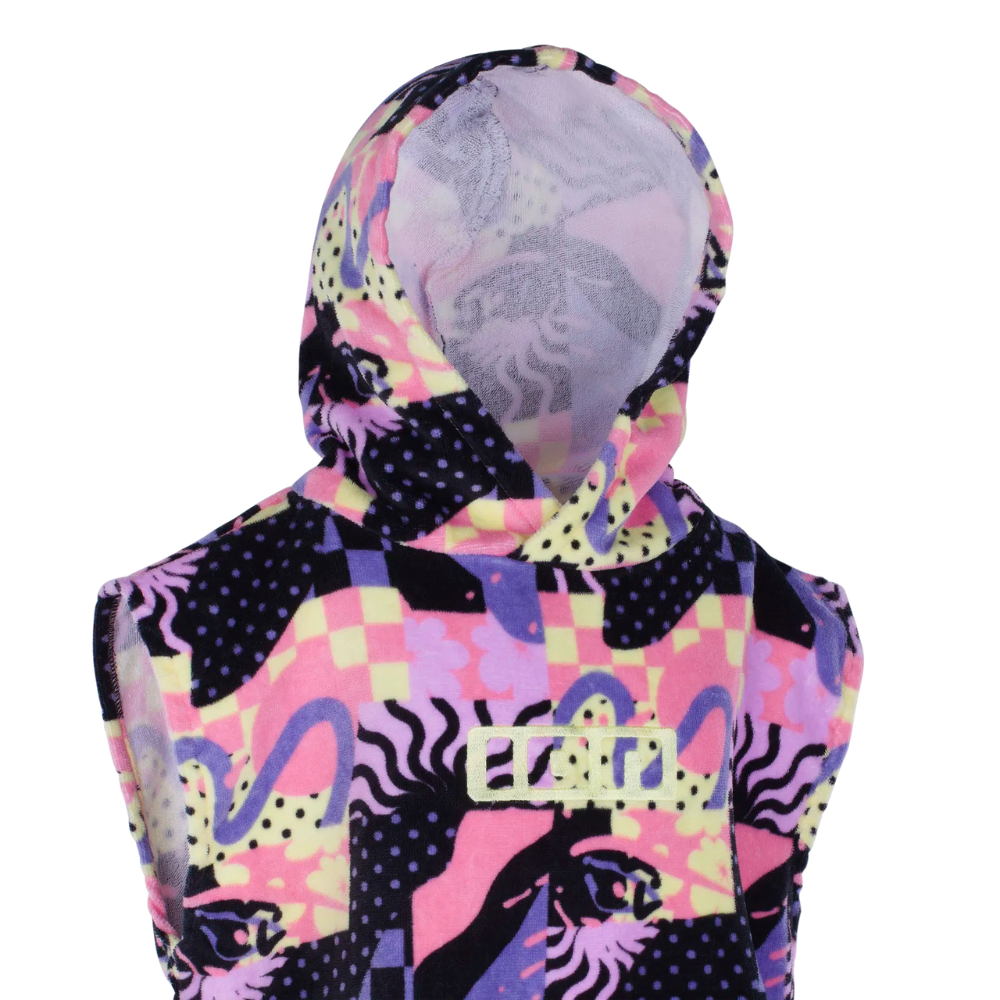 The mobile changing room & beach towel for kids 60 – 110 cm tall! Your mini-you needs to stay warm and cosy in between its “sessions” too. That’s why we have the Poncho Mini-Grom in the same comfy cotton terry cloth than the grown up’s version. Easy to get in and out – that’s all you need for a happy day on the beach.