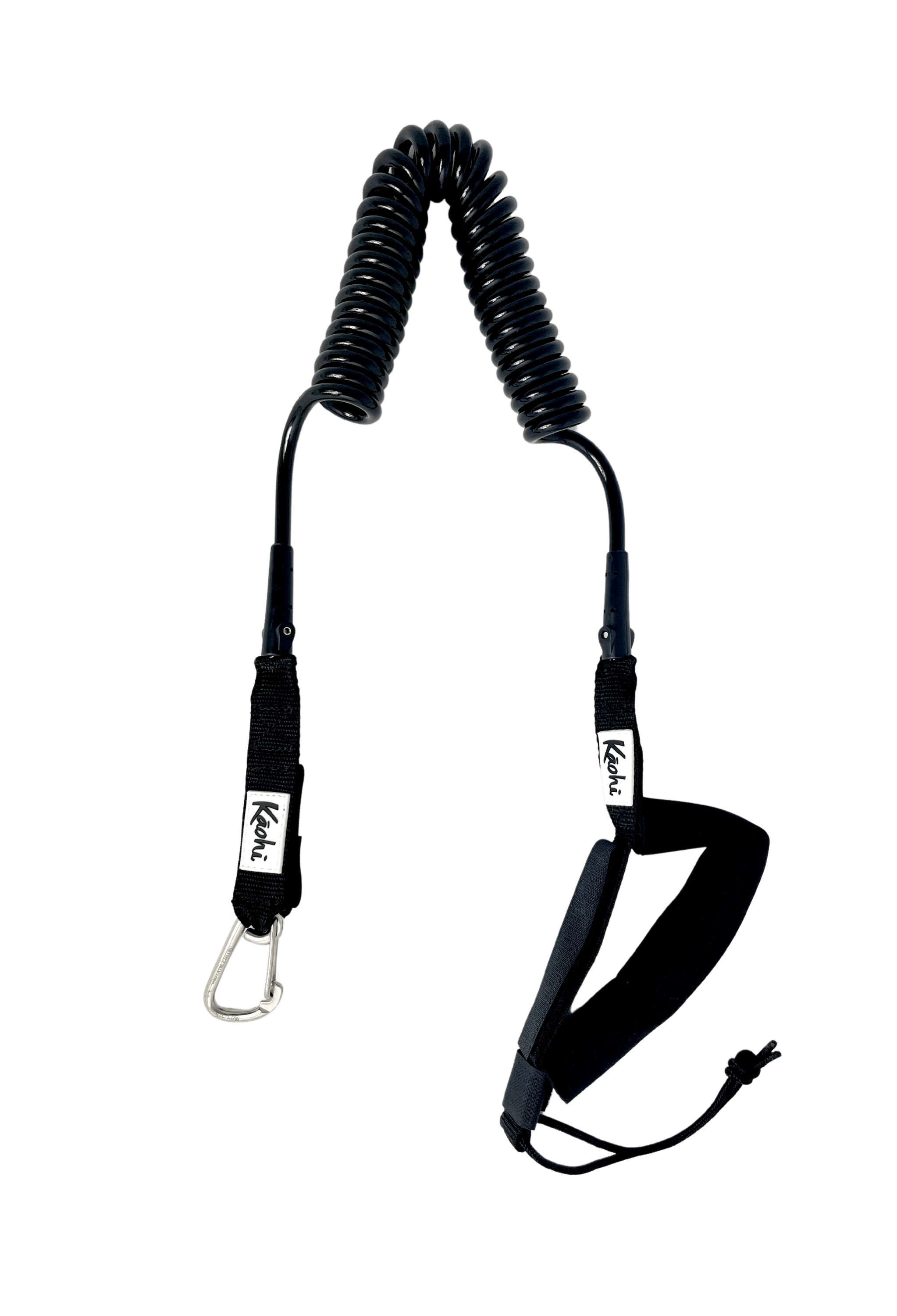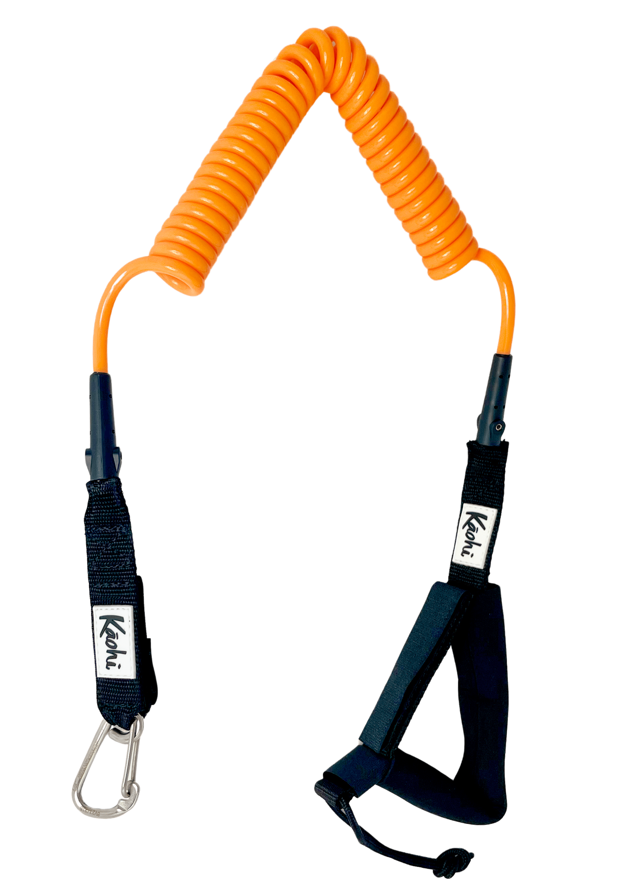 Kāohi Continuous Coil leash features Kāohi’s patented Grip: a rail-saver handle that enables you to keep your board close to you between sets and in whitewater, and helps you to avoid others in the water and safely return to the line-up. The Grip is also great for pulling your board onto a jetski sled or dock. Do not hold on to the Grip handle in the impact zone of any wave, as described in our product Notices; let your Kāohi Grip Leash™ do its job!