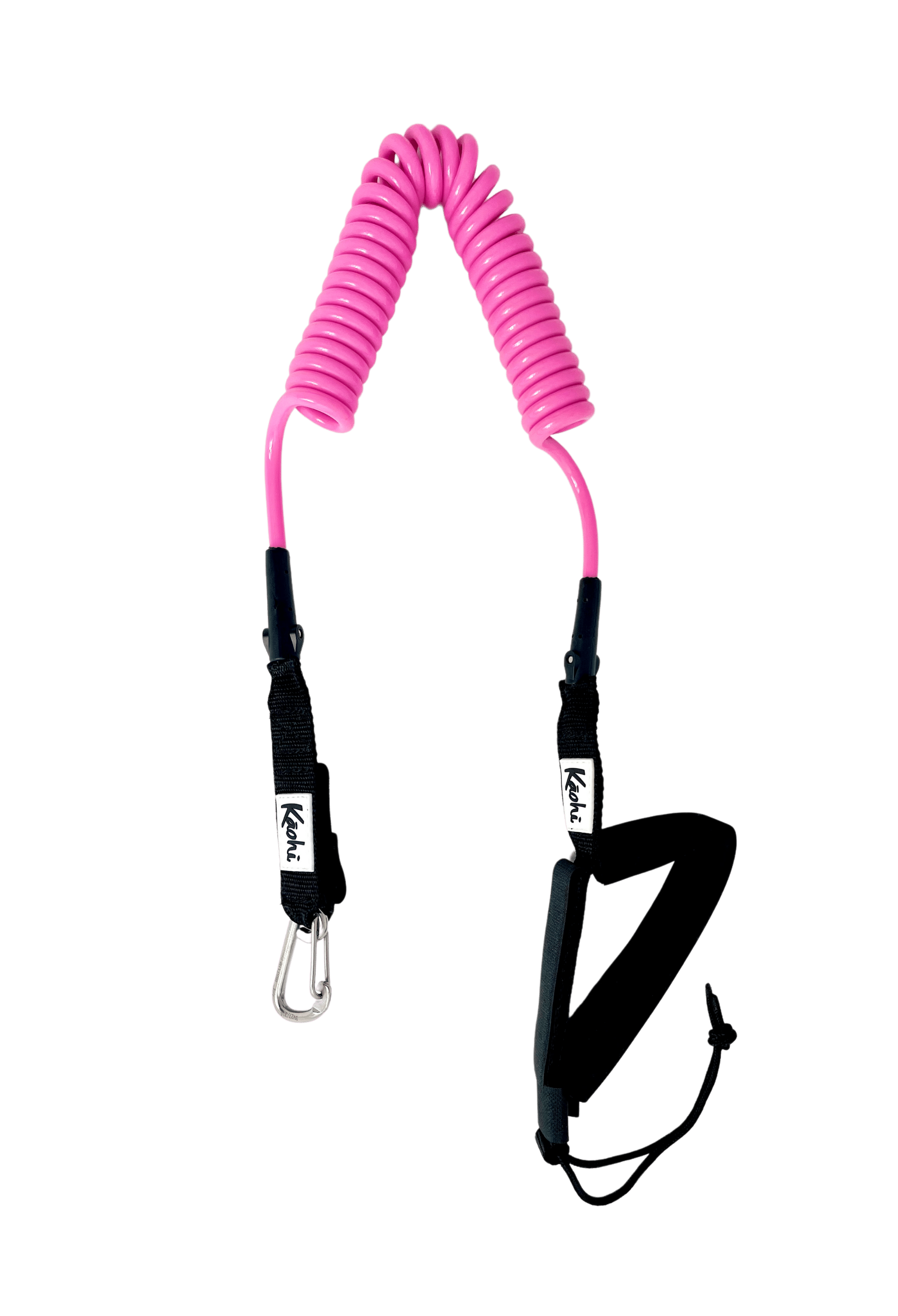 Kāohi Grip Continuous Coil 8 mm Leash is a designed for Foilers, Wing Foilers and SUP surfers that seek out more challenging surf. It’s also idea for SUP Racing. The Continuous Coil minimizes leash drag, so your surfing and racing experience is more efficient. This 10 foot leash is available in your choice 3 colors: Black, Orange or Pink and with either an Ankle or Calf Cuff.