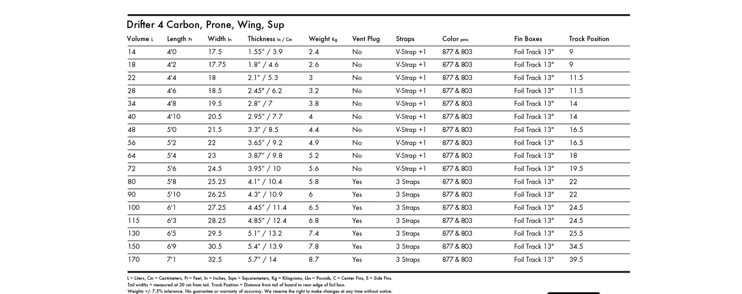 Now in its 4th generation, the tail has a more radical bevel for clearance and maneuverability. The Drifter 4 Carbon comes in a huge range of sizes from 14 to 170 liters. Great for electric foil assist.