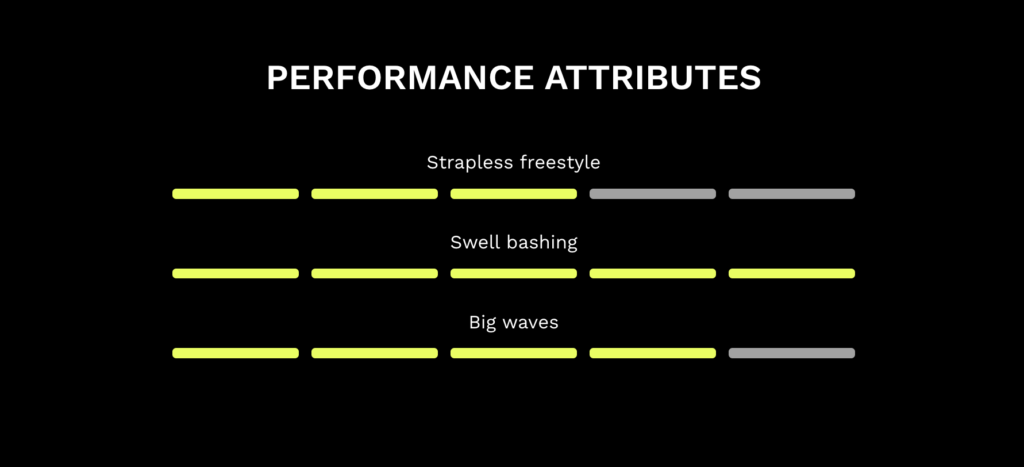 The Kokomo is a modern, new school shape built for high performance in real-world conditions. It stays smooth through chop and messy bumps, and it still feels tight and responsive on a clean wave. You can lock into turns at lower speeds, carry speed through sections, and ride with less power.