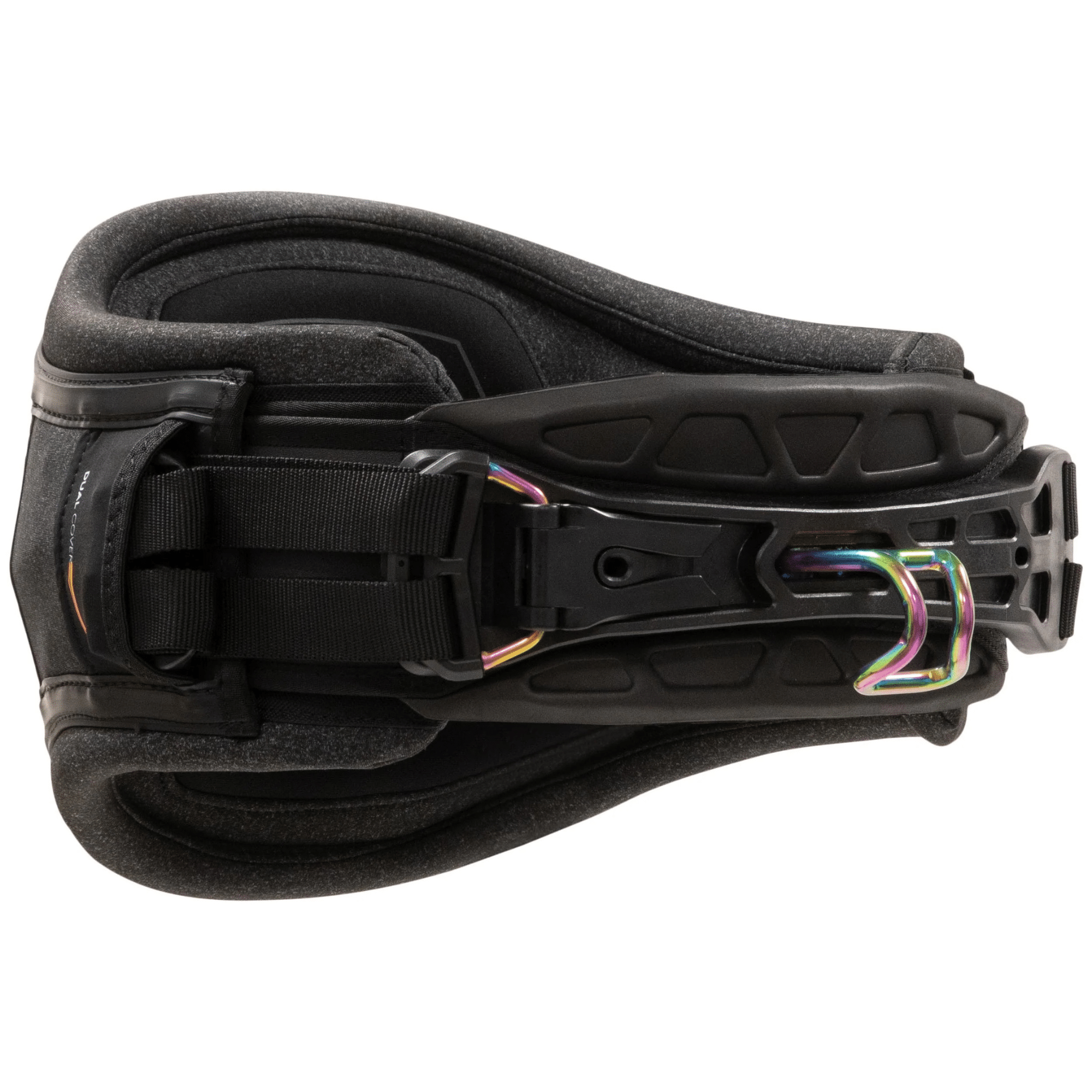 Vapor, pure tm pre-shaped moulded hardshell kiteboarding harness. The most extreme, full support harness ever. Full neoprene inside and build on our proven shell construction combining a shaped back support directly to our bar for perfect load distribution and the ideal fit. Made out of a pure tm composite with flex-gen memory foam. Delivered with our unique titanium electroplated Alpha bar combined with the original molded slide in Barpad System prevents the bar to ride up.