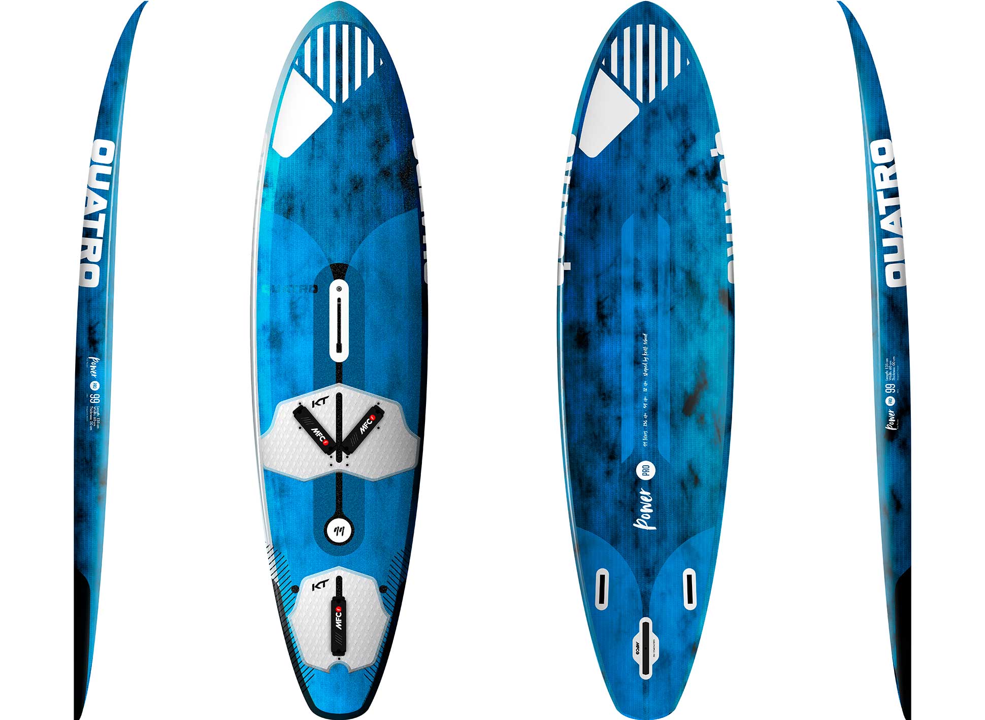 The bottom is a full vee with double concaves for a sweet blend of maximum speed and the most comfort. A fuller, more parallel outline has been incorporated for increased stability and drive though your turns and jibes. The Power Pro is fast paced and comfortable, the most stable ride of all Quatro Windsurfing boards. But don’t be mistaken, this board can throw spray and lay maneuvers into the water that would have been reserved to pure wave boards or freestyle boards until not long ago. Fully modern and fully inspired by its more radical siblings.