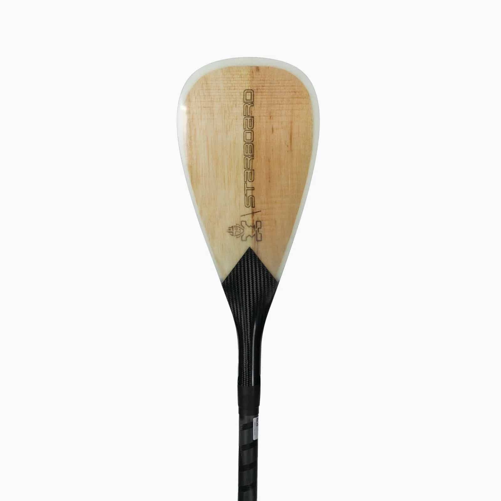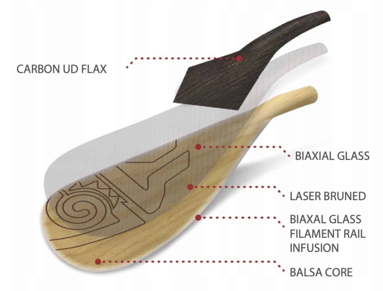 The wide lower part helps create a maximum efficiency area even if your stroke is not yet deep enough into the water. That wide lower part is also great to lean on for stability in the waves and has won 3 world titles in the last 2 years