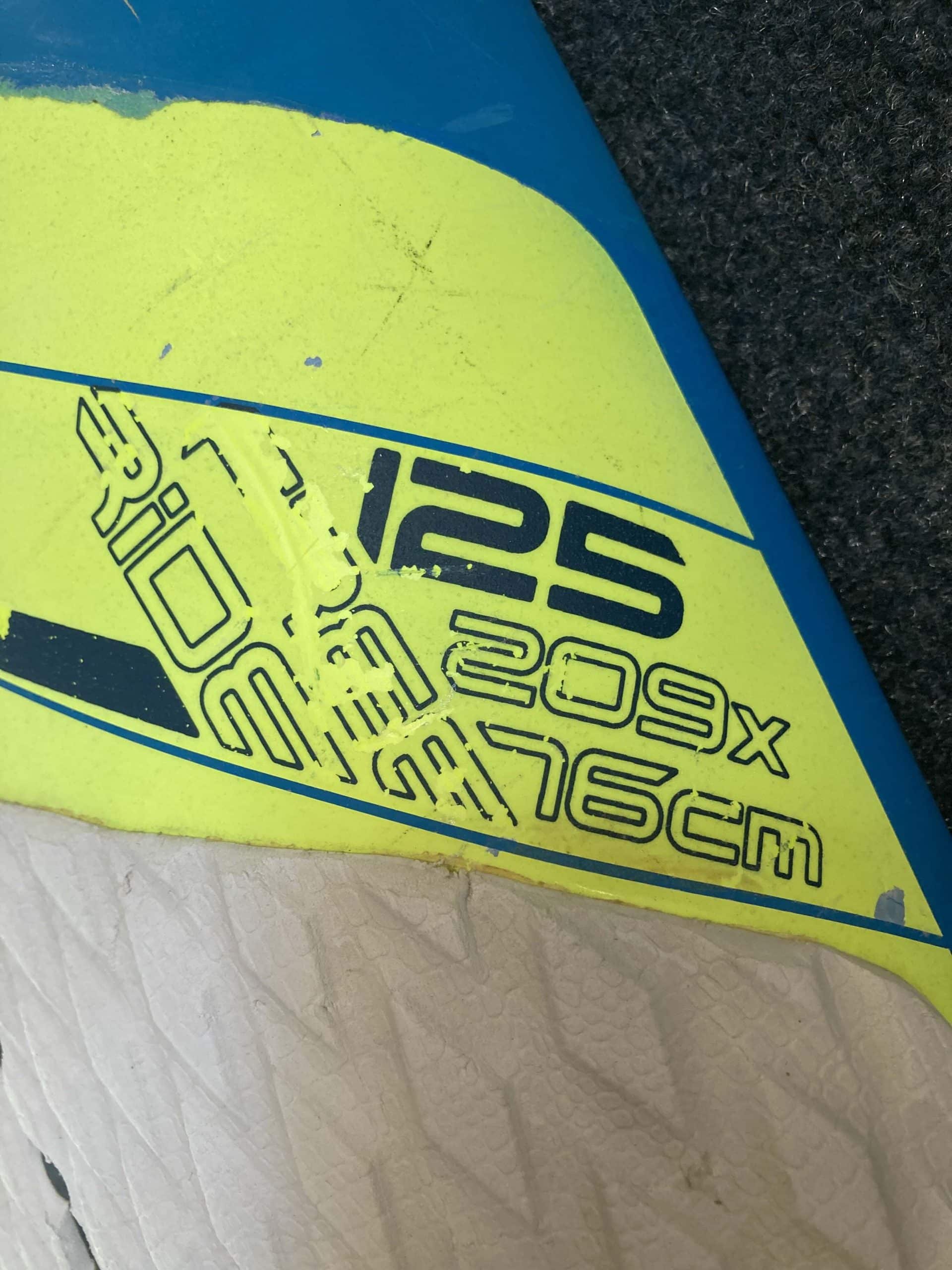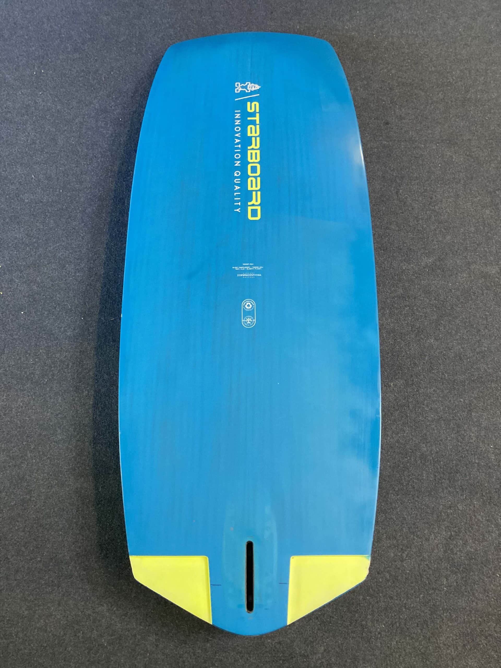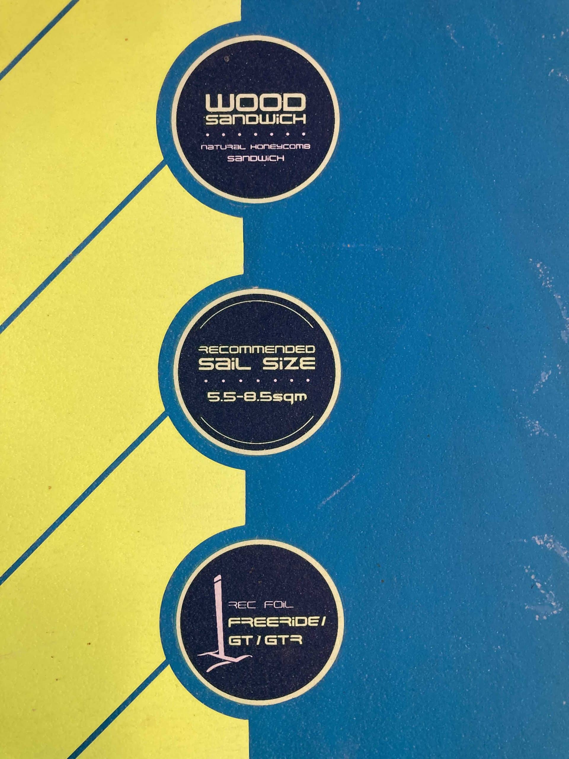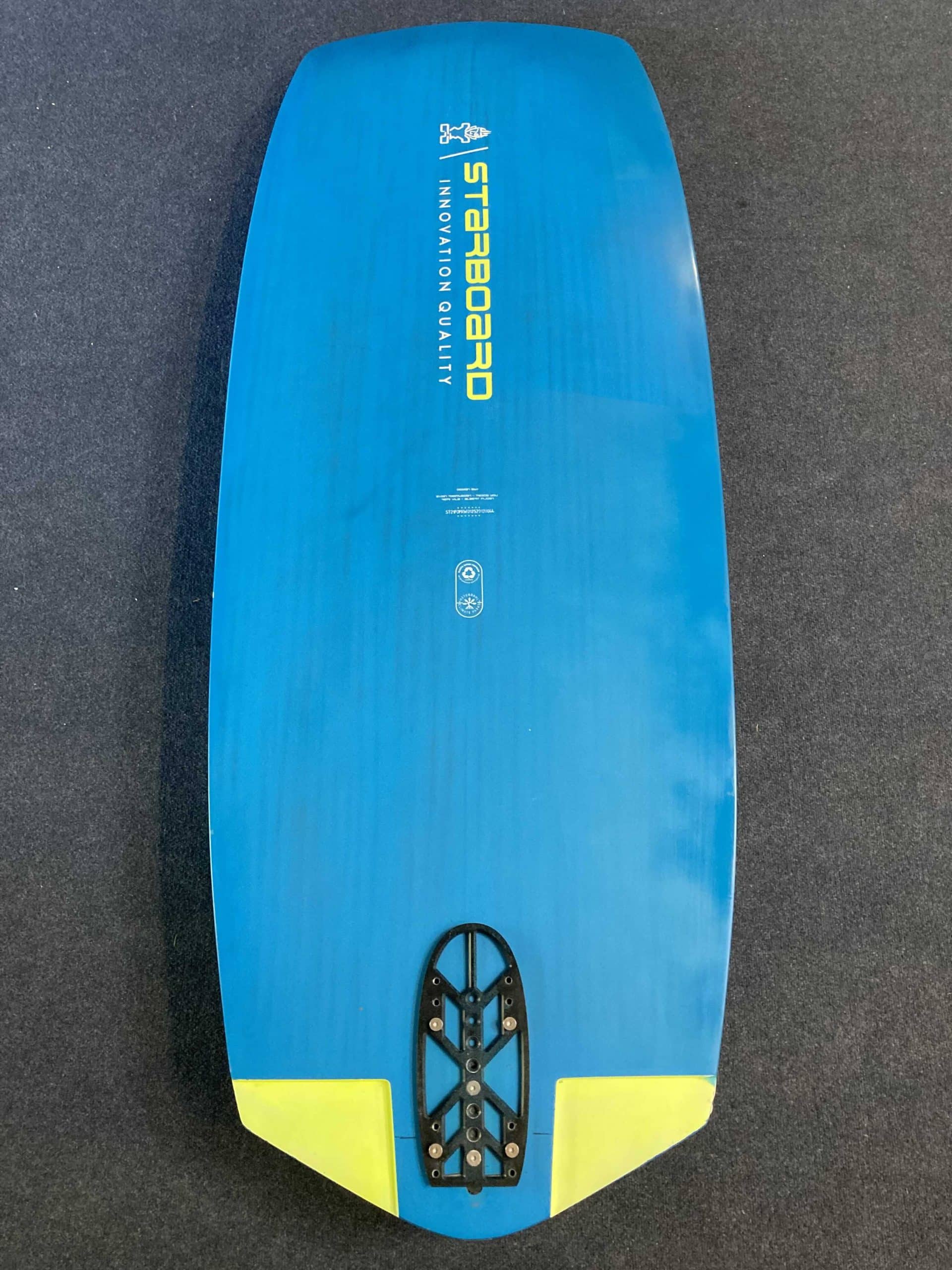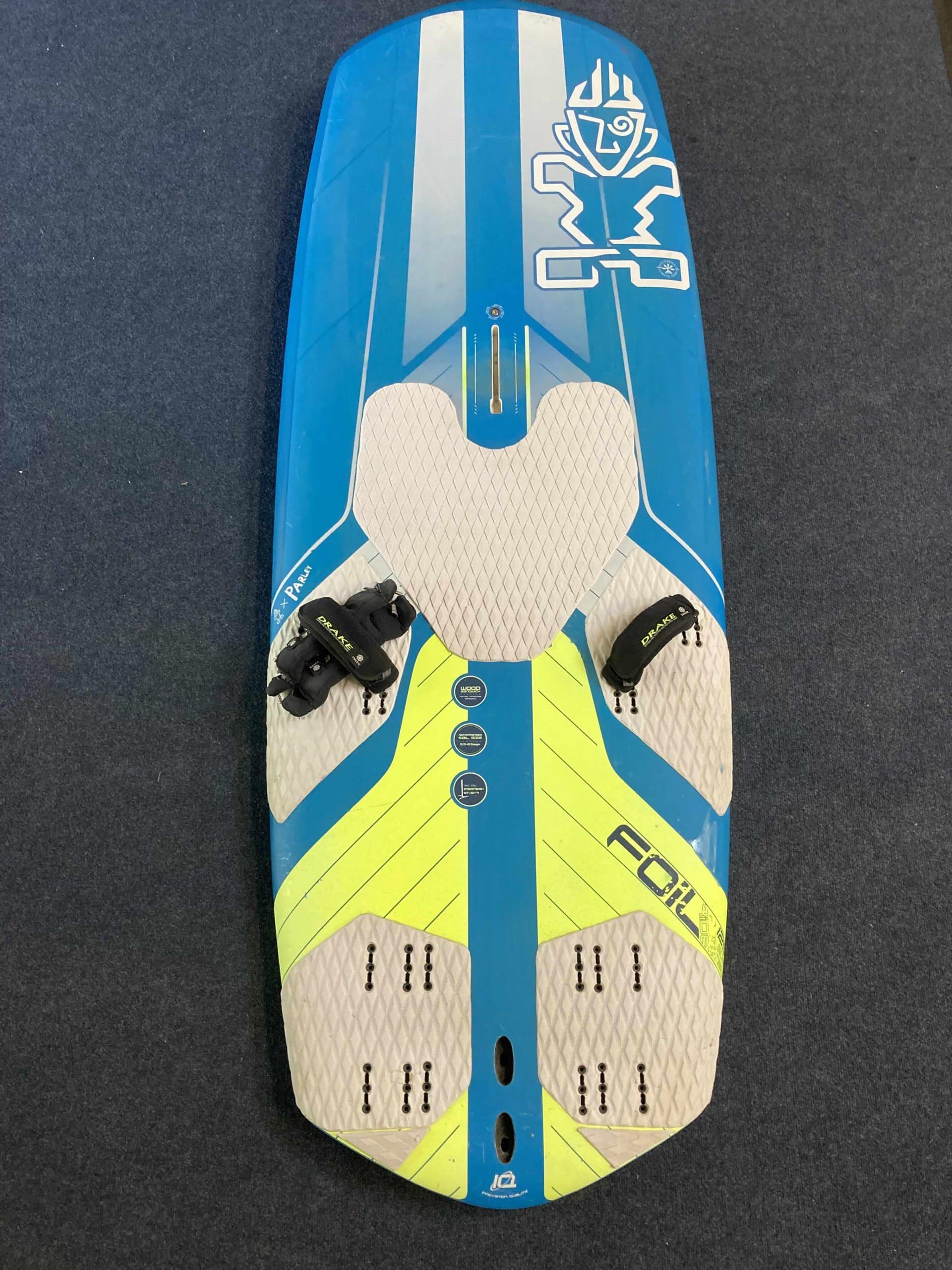 C condition. Well used w/ cosmetic wear and some well done repairs, but structurally solid. Additional EVA Deck Pad added between front footstraps and mast track to reduce abrasion when climbing onboard. Deep Tuttle Foil Box, but included is a Slingshot Jack Plate Adapter for Track Mount foils. Very stable and user friendly all-around design for newbies and skilled riders.