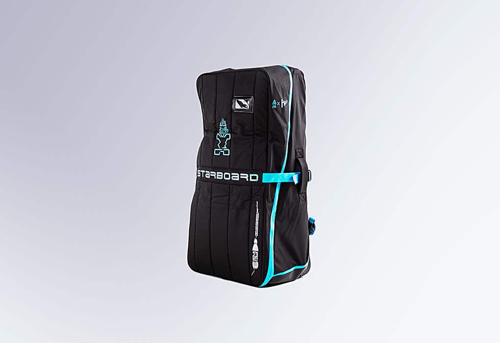 Starboard inflatable boards are supplied with our roller-wheeled bag that packs everything away tidily and conveniently. Featuring eco RPET 450D outer fabric layer made from recycled plastic bottles, in partnership with Waste2Wear. The bottles are chopped into flakes, washed, melted and extruded into yarns and then spun into a fabric. Between 30 to 50 bottles are.